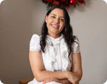 Hoje sou mãe, empreendedora criativa e referência em enxoval para bebê, e ajudo arteiras de todo o Brasil a conquistarem liberdade e realização através do que amam fazer.